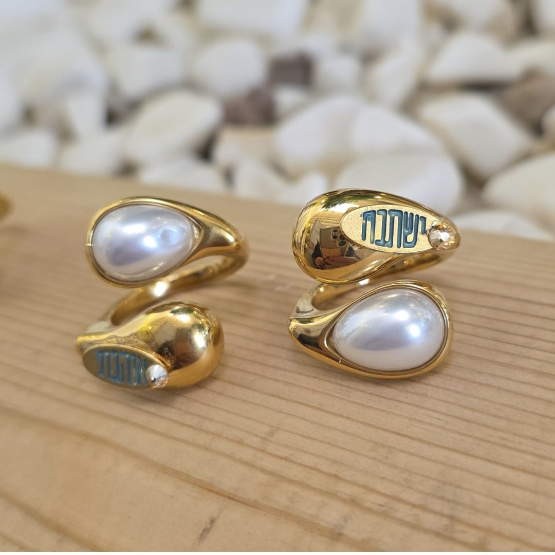 טבעת סטיל בשילוב פנינה ואלמנט עם אמירה לבחירה