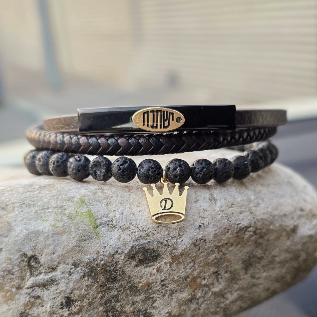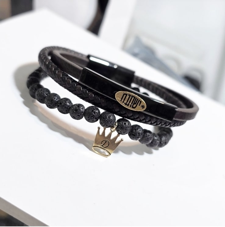 צמיד עור בשילוב חרוזי לבה