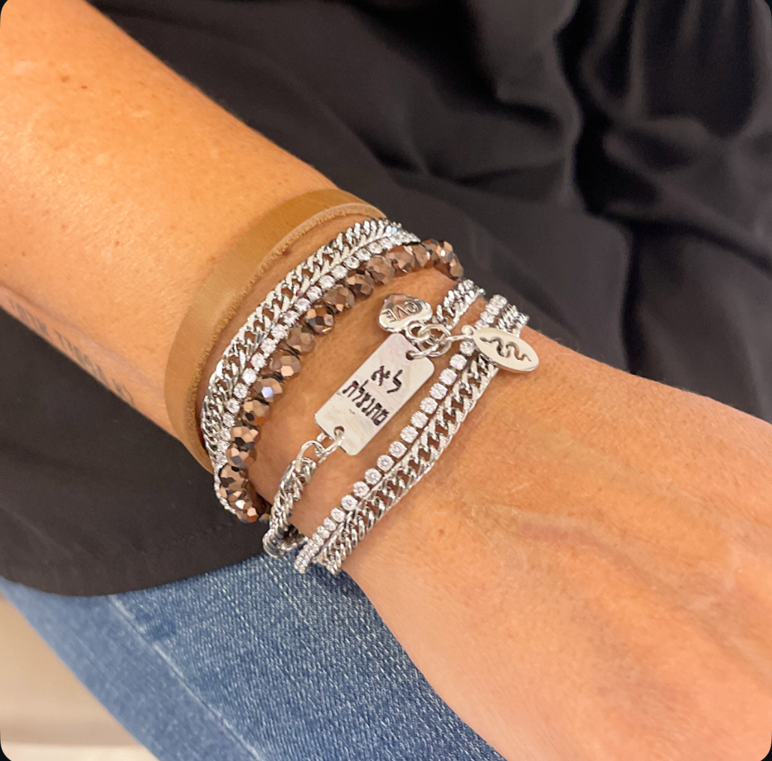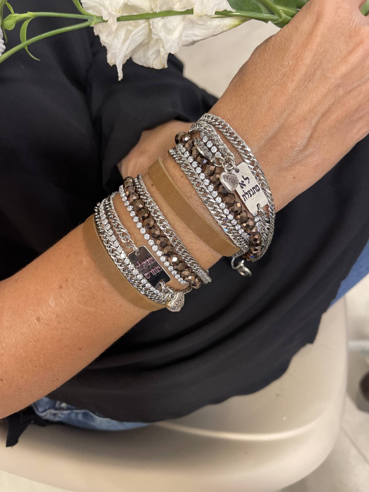 צמיד שורות שרשראות ושילוב חרוזי קריסטל מנופף ברצועת עור עם אמירה לבחירה חובה היקף יד